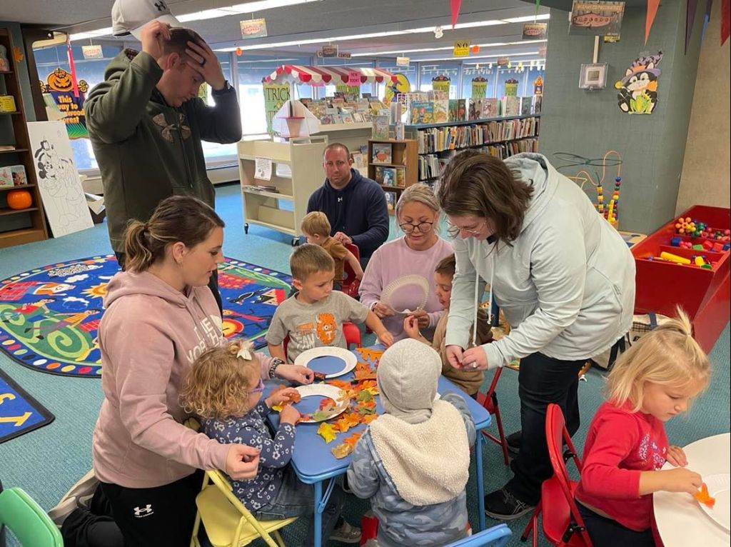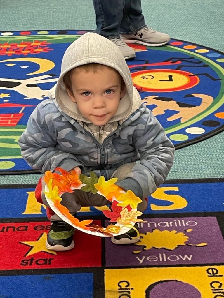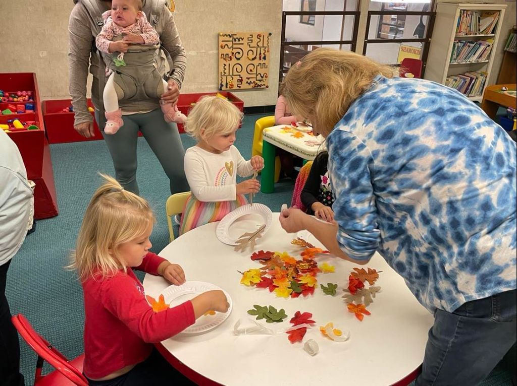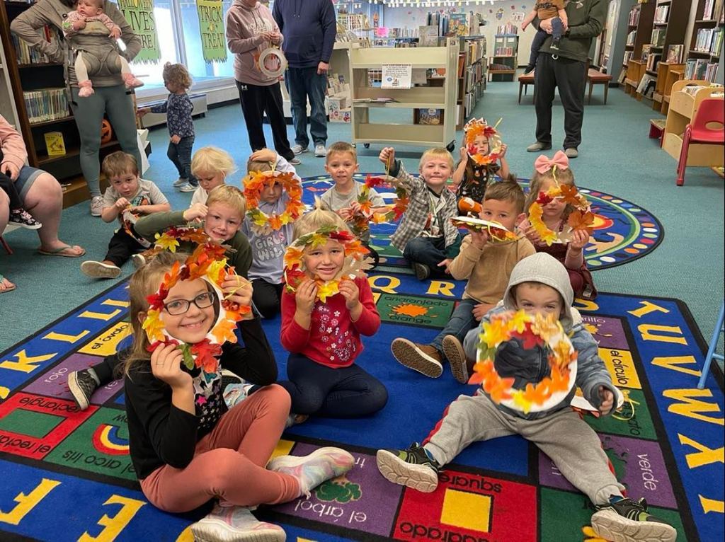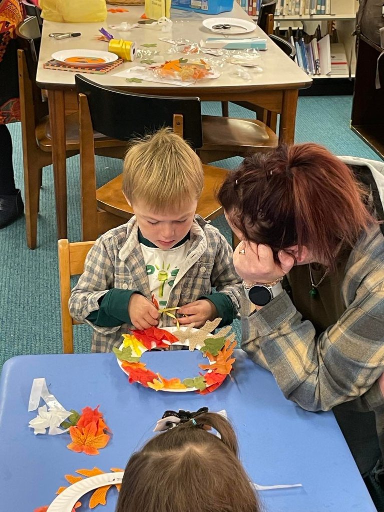 We had quite a crowd at Preschool Storytime & Movement this morning! After reading “When the Leaf Blew In” and singing our songs, each child crafted their very own fall wreath to take home.