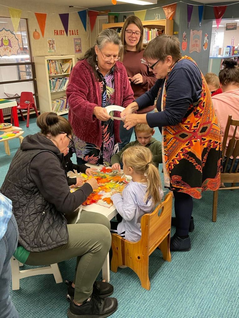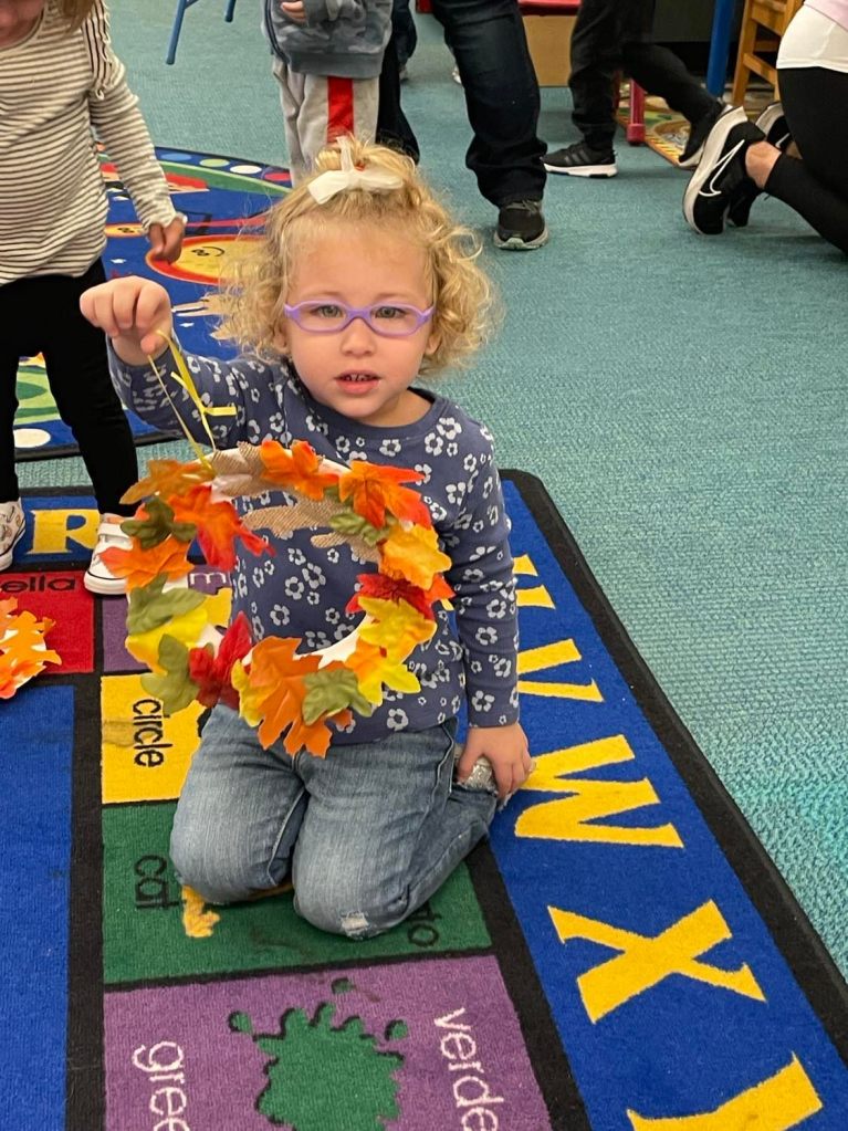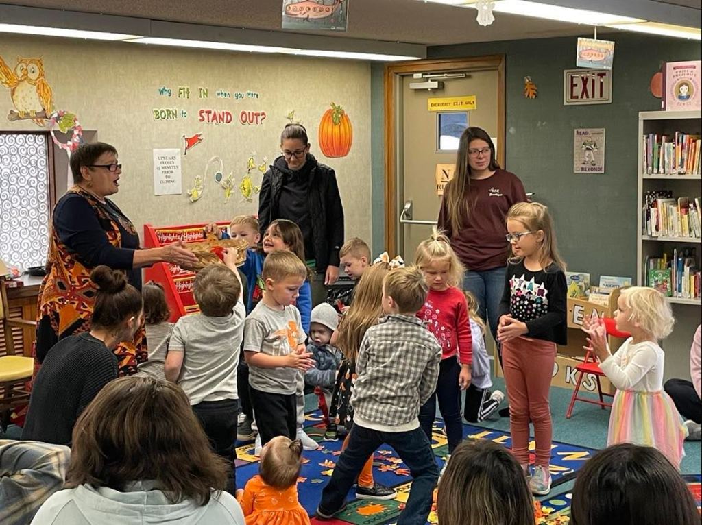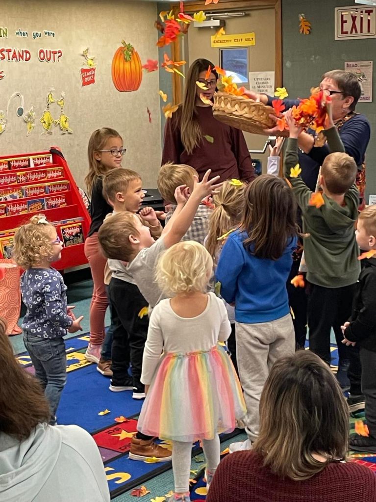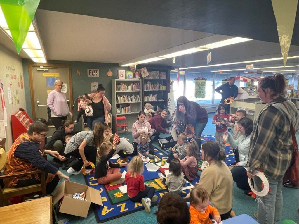 We had quite a crowd at Preschool Storytime & Movement this morning! After reading “When the Leaf Blew In” and singing our songs, each child crafted their very own fall wreath to take home.